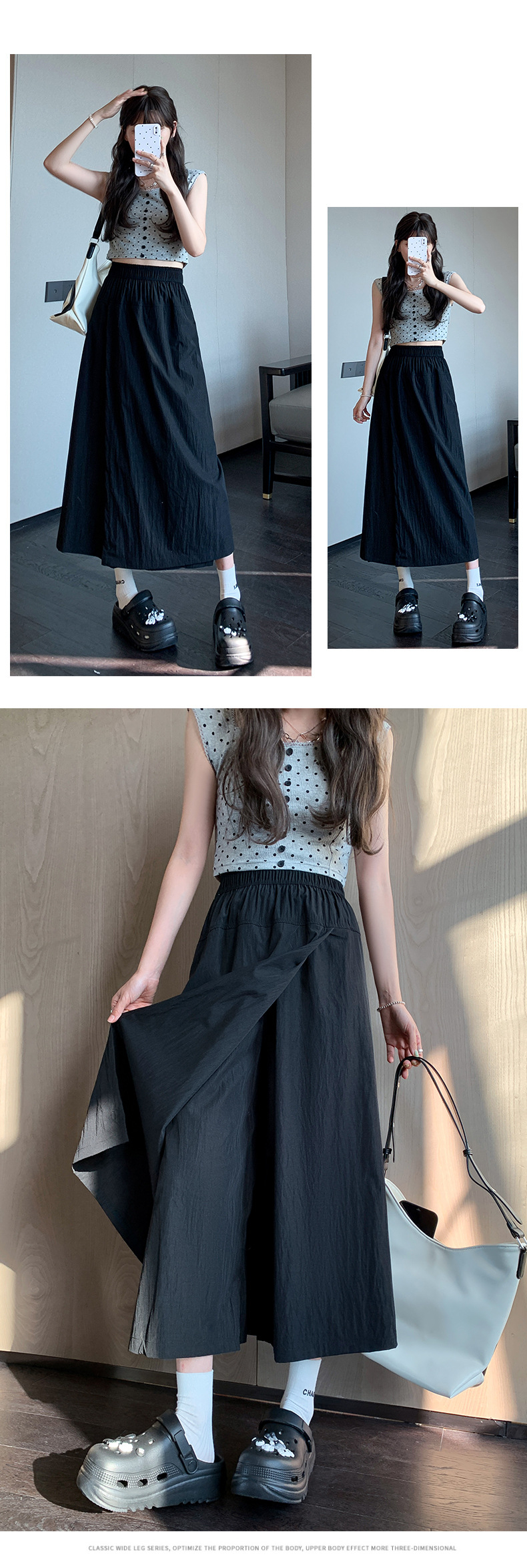 グレーヤマモトワークウェアスカートパンツレディース夏レディースハイウエストパンツAラインスプリットスカートパンツ小さいサイズアイスシルクワイドレッグパンツ